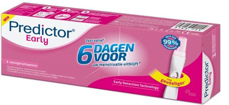 Comment utiliser ce test? : Tout d’abord, mettez Prédictor early dans le jet d’urine pendant 5 secondes. Ensuite, attendez 5 minutes et le résultat apparaîtra. Si vous avez eu un trait rose ou mauve dans la fenêtre de résultat, alors vous êtes enceinte. Dans Prédictor early, vous trouverez un deuxième test pour confirmer votre grossesse.
